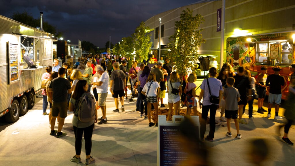 - Food trucks and activities on Entry and Amphitheater Plazas