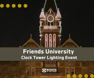 Friends University illuminates the historic Davis clock tower on November 23, 2025, at 6 p.m. This time-honored tradition on the Friends University campus at Rose