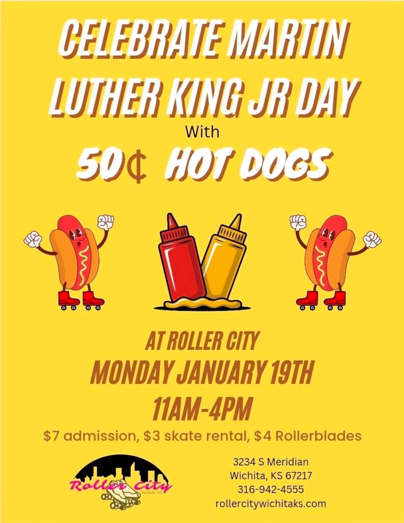 At Roller City on Martin Luther King Jr. Day, admission is $7, and skate rental is $3. They will also be selling .50-cent hot dogs.