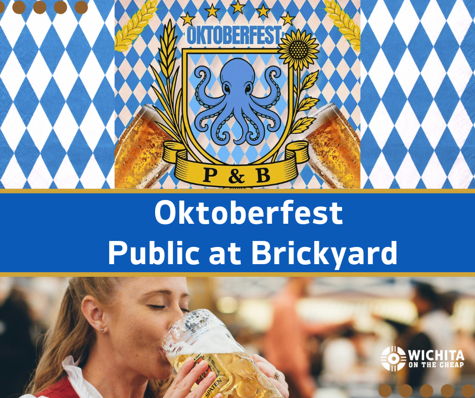Oktoberfest at Public at the Brickyard is the perfect way to raise a stein and celebrate Oktoberfest in the heart of downtown Wichita. The party will feature German beers, live music, and plenty of brats and bierocks to enjoy. For $25, you can grab your very own P&B Stein with their signature octopus design, which includes two beer tickets, or simply order your favorite brews individually. It’s a festive night filled with great food, drinks, and downtown vibes.